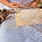 A renda de bilros é produzida pelo cruzamento sucessivo ou entremeado de fios têxteis, executado…